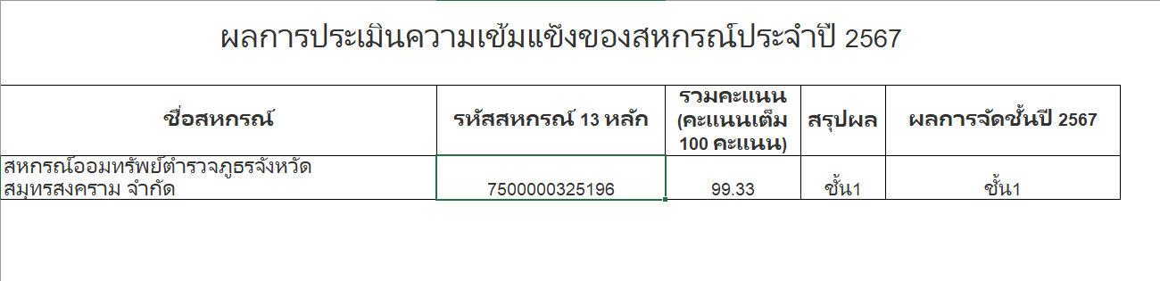ผลการประเมินความเข้มแข็งของสหกรณ์ประจำปี 2567 30 กรกฎาคม 2568 โดย adm_samutsongkhram / ข่าวประชาสัมพันธ์ สอ.ตร.สส.จก