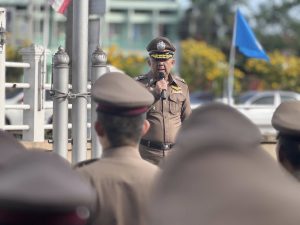ณ บริเวณเสาธงหน้าอาคาร ตำรวจภูธรจังหวัดสมุทรสงคราม